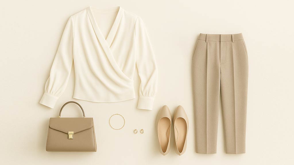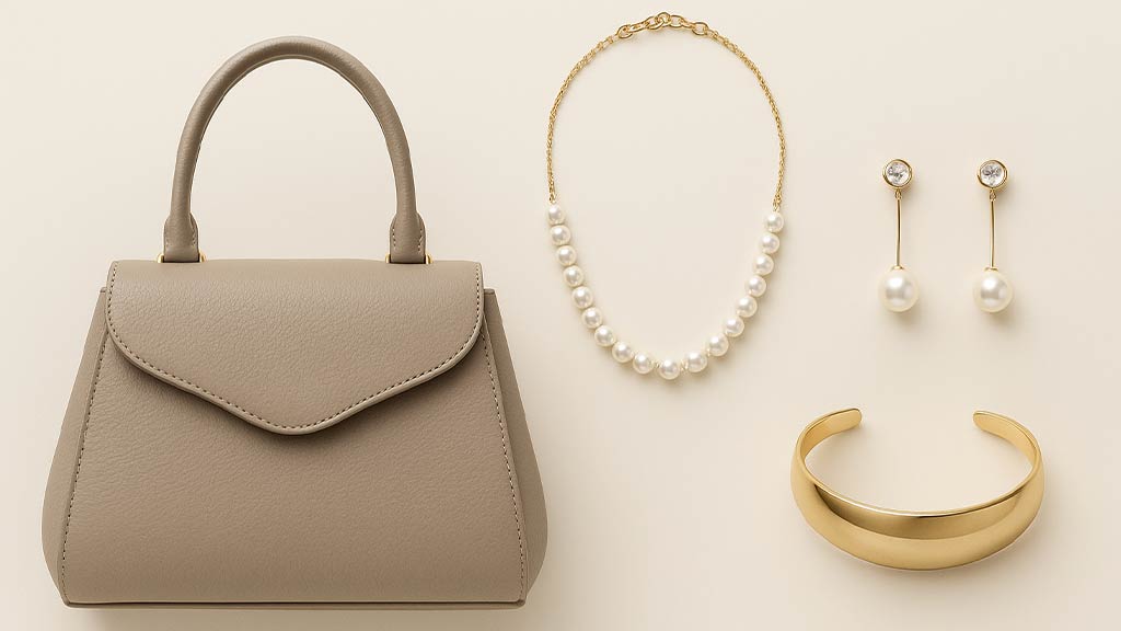 上品なバッグ、細身のベルト、シンプルで美しいアクセサリーがよく似合います。