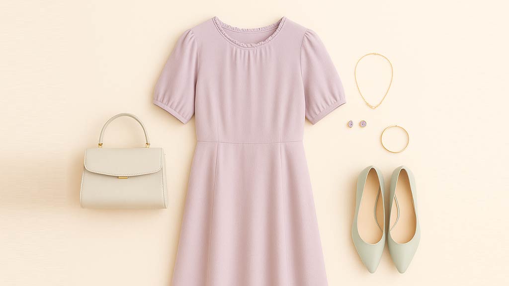 パールアクセサリーや丸みのあるバッグ、リボンなどがイメージによく調和します。