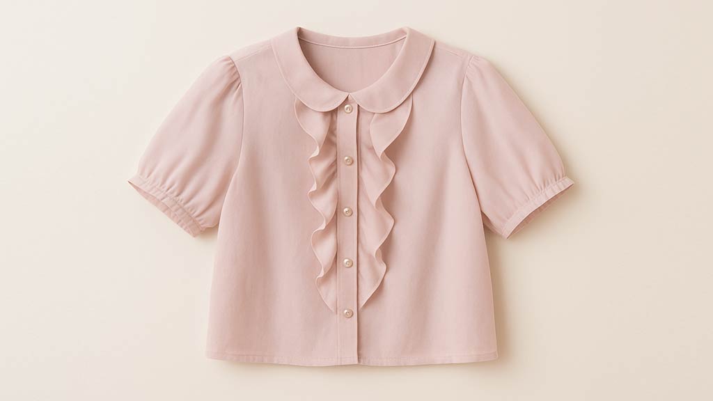 ラウンドネック、フリルやレースがあるデザイン、パフスリーブなど丸みを意識したアイテムが似合います。