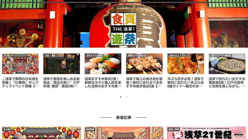 定番の伝統食から話題の飲食店、祭りや花火大会など、浅草の魅力を網羅した情報を発信しています。